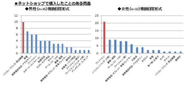 男性はパソコンやカメラ、家電などのハード系の購入が最多