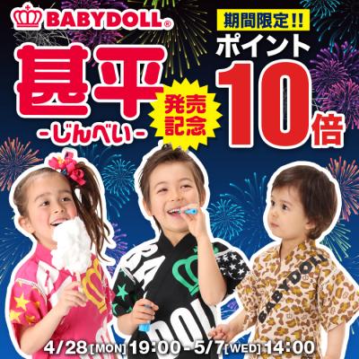 ベビー・キッズ服ブランドBABYDOLL(ベビードール)が通販サイト各店にて、ベビド甚平発売記念[期間限定ポイント10倍]キャンペーンを4/28(月)19:00より開催!