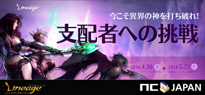PC向けオンラインゲーム『リネージュ ~Eternal Life~(以下、リネージュ)』をサービス、運営しているエヌ・シー・ジャパン株式会社(本社:東京都渋谷区、代表取締役:金 澤憲(キム テクホン))は、2014年4月30日(水)定期メンテナンス終了時から2014年5月20日(火)定期メンテナンス開始前までの期間「支配者への挑戦」を実施いたします。