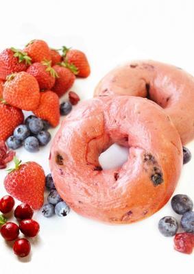 5月限定マンスリーベーグルの『トリプルベリー』は、クランベリー、ストロベリー、ブルーベリー、3種のベリーを練り込んだ果肉感たっぷり、ルビー色の鮮やかなベーグルです。