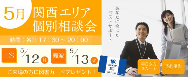 大手前大学通信教育課程(兵庫県西宮市)は、5月12日(月)に、兵庫県の神戸市勤労会館にて、入学や学習についての個別相談会を開催いたします。