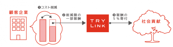 本活動は、当社が得た報酬金額の一部を本活動にあてる為、顧客企業に対して追加負担を求めるものではありません。5%という寄付率の設定は僅かなものであり、大きな貢献を果たし得ないギゼン的なものとの批判も予想されます。しかし、当社は「やらないよりやった方が良い」と考えますし、顧客企業において「自社のコスト削減が別の誰かの役に立つ」と意識され、削減へのモチベーションが高まれば良いと考えます。この活動を通じて「ちょっと社会貢献」を無理なく、持続可能な形で行いたいと思います。本活動は2014年の5月1日以降の新たな契約に対して実施いたします。