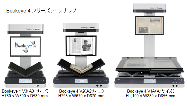 Bookeye 4 V3は、Image Accsess社がこれまで培ってきた、高品位ラインスキャン、LED光源、V字型ブッククレイドルと画像の平面補正、といったブックスキャナーの技術を継承し実装いたしました。Bookeye 4シリーズはA3からA1サイズまでどの機種を選んでいただきましても共通のインターフェースで安心してお使いいただけるブックスキャナーです。