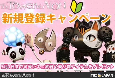 PC向けオンラインゲーム『The Tower of AION(以下、タワー オブ アイオン)』をサービス、運営するエヌ・シー・ジャパン株式会社(東京都渋谷区、代表取締役:金 澤憲(キム テクホン))は2014年7月1日(火)定期メンテナンス開始前までの約2カ月間、「新規キャラクター育成応援キャンペーン」を実施いたします。
