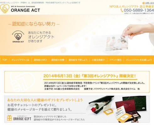 NPO法人オレンジアクト 設立準備室では、NPO法人オレンジアクトの活動推進を円滑に行い、十分な目的達成を目指し、本活動の支援となる「オレンジアクト基金」を本日5月8日(木)より公式サイト上にて受け付けております。さらに、認知症早期発見・予防啓発運動をともに行う会員(個人・企業・医療機関など)も同時募集しております。