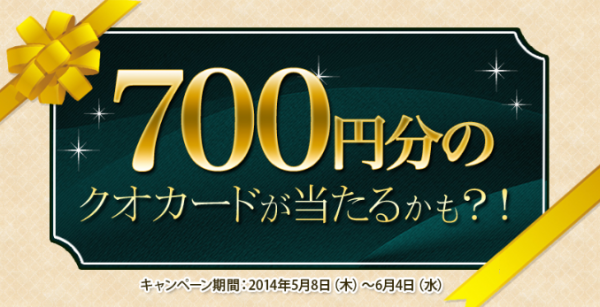 『700円分のクオカードが当たるかも?!キャンペーン』は、2014年5月8日から6月4日までの期間中にキャンペーンページでエントリーの上、1回以上お買い物をされたお客様から、抽選で毎日1名、合計28名様に700円分のクオカードをプレゼントするものです。