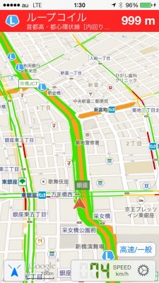 また、地図上に交通状況表示を行い、渋滞や道路の混雑状況を確認することができます。