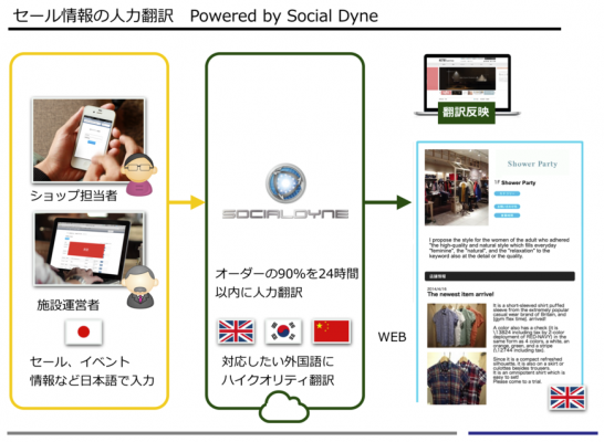 商業施設が日々配信するセール情報、イベント情報、ショップ情報なども、タイムリーに人力翻訳することができます。この機能は他には無いインバウンドWEB独自機能です。