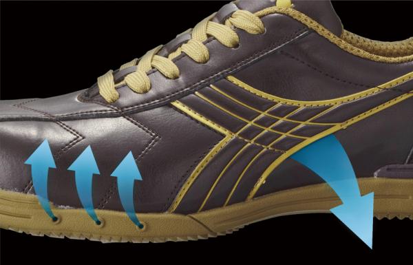 新登場の「スカイラーク」には、安全靴の「ムレ」を解消するのための、独自の「エアレーション(通気)構造」を施しています。