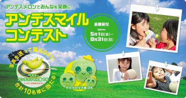 サカタのタネは現在、メロン「アンデス」の販売促進施策として『アンデスメロンキャンペーン』(協賛:熊本県経済農業協同組合連合会、全国農業協同組合連合会 茨城県本部、全国農業協同組合連合会 山形県本部)を展開していますが、キャンペーンの一環として、「アンデスメロンでみんなを笑顔に!」をコンセプトにした、写真コンテスト『アンデスマイルコンテスト』を併せて開催しています。