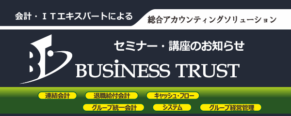 また、業務新担当者様向けの各種会計入門講座もご用意しておりますので、企業様の研修・新人教育の一環としてご活用いただけます。今後も、随時業務担当者様にお役立ていただけるな内容のセミナー・講座を開催していく予定になっていますので、是非ビジネストラストのホームページ(http://www.b-trust.co.jp)にてセミナー・講座情報をご確認ください。