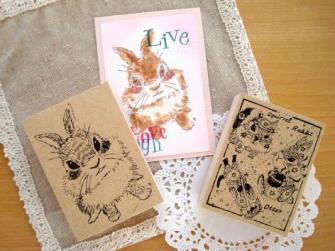 ATC(アーティストトレーディングカード:約64×89mmのサイズにスタンプなどを押して作品を作り、交換するカード。クラフト界では世界中で楽しまれているが、日本ではスタンプ愛好家の中で近年人気が上がっている)にもピッタリのサイズですが、バースデーカードやサンキューカードにも使える文字のスタンプも作成しています。