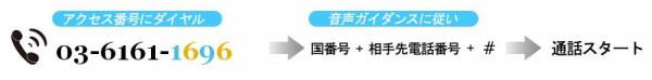 *アクセス番号までの国内通話料金はご利用者様ご契約の電話会社から請求されます。ご利用のプラン等により料金が異なるため、国内通話料の詳細をご契約の電話会社に確認して下さい。