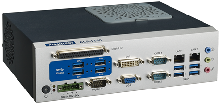 「AIIS-1240」と「AIIS-1440」は豊富なI / Oインターフェースを提供します。4つのPoEまたは4つのUSB3ビジョンチャンネルの他に、それぞれプラス40ビットデジタルI/O、4つのUSB3.0、4つのUSB2.0 4、および6のシリアルポートを実装しています。4つのUSB3.0ポートは高性能のデータ転送速度を最大5Gbpsまで提供します。フロントパネル上の2つのシリアルポートはBIOS設定によりRS-232、RS-422またはRS-485として構成することができます。これらのインターフェースは様々な周辺デバイスをサポートしています。