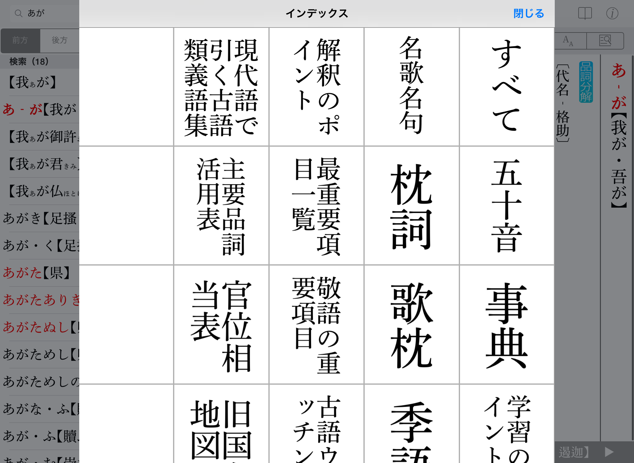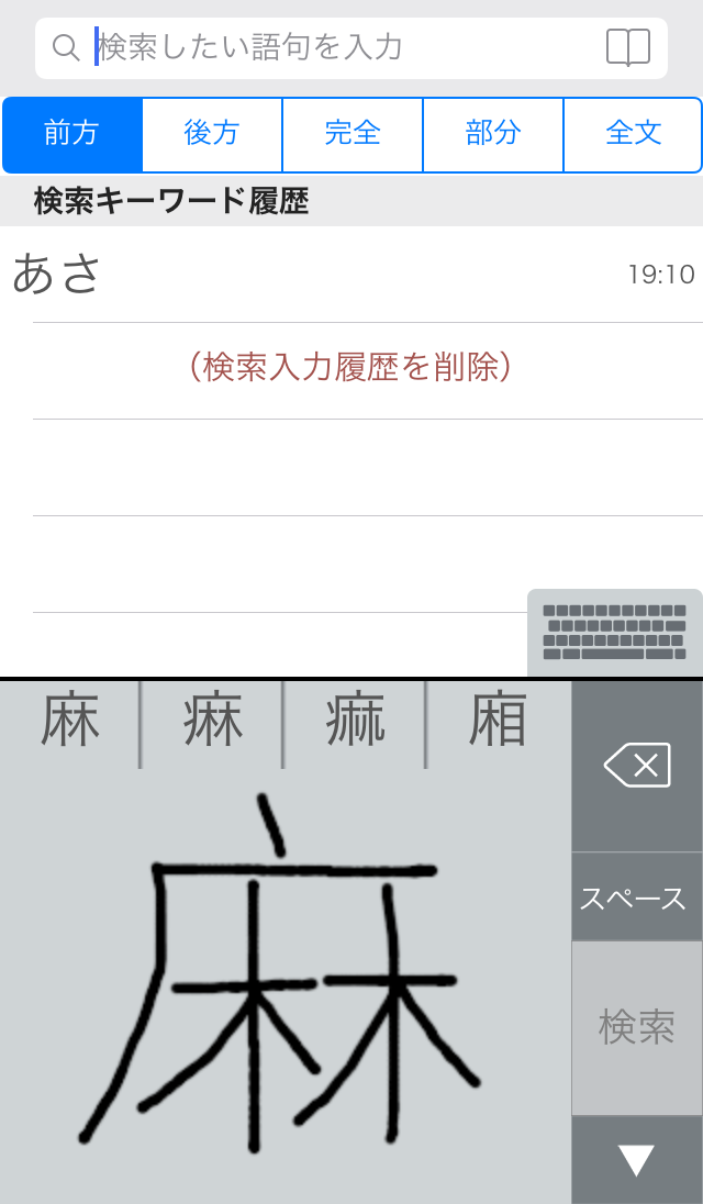 ●インクリメンタルサーチ対応(部分検索/全文検索除く)?文字を入力すると候補見出し語が表示されるので、うろ覚えでも見つけやすい
