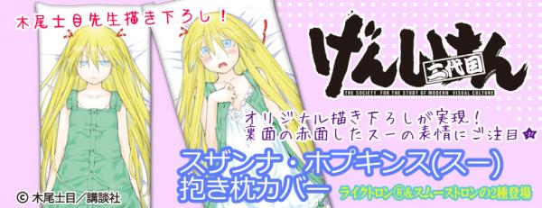 アニメ・ゲーム等のグッズ販売を手がける株式会社GATE(本社:東京都台東区)は、2014年6月27日発売にて「げんしけん二代目」の「スザンナ・ホプキンス(スー)」の木尾士目先生描き下ろし抱き枕カバーをライクトロンとスムーストロンの2種の生地での発売を発表、オフィシャル通販の予約受付を開始しました。