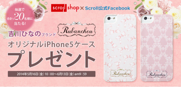 スクロールは、ファッションモデル吉川ひなのとコラボレーションしたインテリアブランド「Rubanchou(リュバンシュ)」のオリジナルiphone5ケースを20名様にプレゼントします。