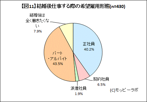 図表参照:【図11】結婚後仕事する際の希望雇用形態(n=430)