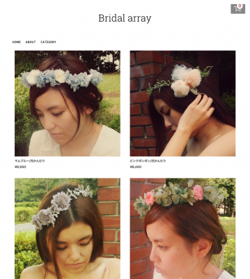 Bridal array(ブライダルアレイ)は、プリザーブドフラワーの花冠や、海外で買い付けた小物類を扱うウエディングアクセサリー・小物類のセレクトショップです。花冠や小物に使用しているお花は生花を特殊加工した“プリザーブドフラワー”を使用。世界に1つとして同じモノが無い生花のため、同じアイテムであっても表情がそれぞれ異なってきます。生花ならではの繊細な表情や味わいを活かしデザインしたアイテムは、ホワイトドレスにとよく映えます。