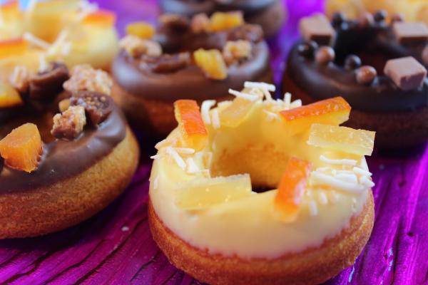 チョコレートコーティングした贅沢でヘルシーな焼きドーナツ