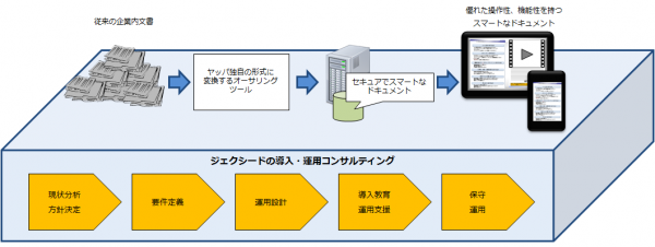 株式会社ジェクシード(本社:東京都千代田区 代表取締役:大島 剛生 以下「ジェクシード」)と株式会社ヤッパ(本社:東京都渋谷区 代表取締役会長:伊藤 正裕 以下「ヤッパ」)は企業向けスマートなドキュメント化の導入、運用サービスにおいて業務提携を締結し、本日より「GX_SmadoX」の提供を開始しましたので発表いたします。
