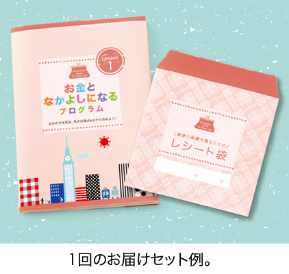 「保険ってどうしたらいいの」「知らないうちに財布が空っぽ」「なんとなくお金を使ってきた」などの悩みを解消し、お金の基礎知識が学べて、無理のないお金との付き合い方が身につくよう開発した、フェリシモオリジナルのレッスンプログラムです。毎月1冊ずつ届くテキストブックで、自分に合ったお金との付き合い方を習得します。6カ月のプログラムは(1)自分のお金状況を知る、(2)お金の基礎知識を学ぶ、(3)自分に合った付き合い方を見つける、という続けやすい3ステップです。シンプルで簡単な家計簿ページに書き込むことで、自分の収支バランスも一目瞭然になります。レシートを入れておける便利な「レシート袋」や、自分の将来プランを考えるきっかけになる「人生設計シート」もセットでお届けします。