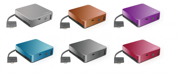 「Power Cube 5200L」は、Apple Lightningコネクタ出力端子ケーブルとUSB出力端子を備え、Appleデバイスとその他のデバイスを同時に充電することが出来ます。Apple Lightningコネクタ出力端子ケーブルは本体に内蔵されるよう設計され、本体サイズが77×77×21.5mm、従量164mmとコンパクトサイズなため、携帯性に優れたモバイルバッテリーになります。本体カラーはグレー、オレンジ、パープル、ブルー、シルバー、ピンクの6色を用意しています。