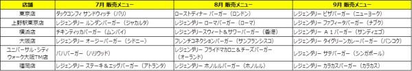 ◆「ワールドバーガーツアー」対象 ローカルレジェンダリーバーガー(ご当地限定バーガー)18店舗一覧