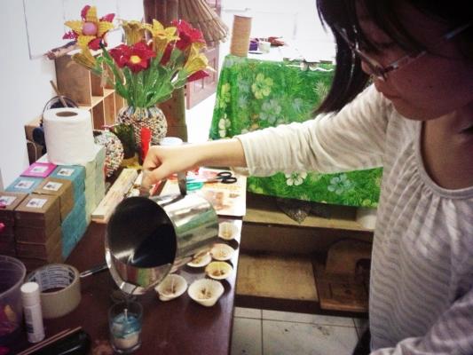 セブの貧困女性の自立を支援するために、日本人女性が設立したフェアトレード工房で、現地の女性たちと一緒に石鹸やキャンドル、アクセサリーなどの手工芸品づくりを行います。