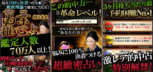 ・アプリ名称:『予約困難NO.1◆平安万葉占い【朝日美天】』