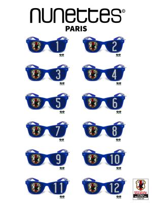 『nunettes(ヌネット)サッカー日本代表チームモデル』は、I LOVEとエンブレムを組み合わせたデザイン(ブルー/ホワイト)とエンブレムを左右のレンズにプリントしたエンブレムデザイン(ブルー/ホワイト)に加えて、背番号1番~12番(ブルー)のラインアップ。既にヨーロッパで販売されているFCバルセロナやボルシア・ドルトムントなどと同じファッション性の高いデザインとなっています。
