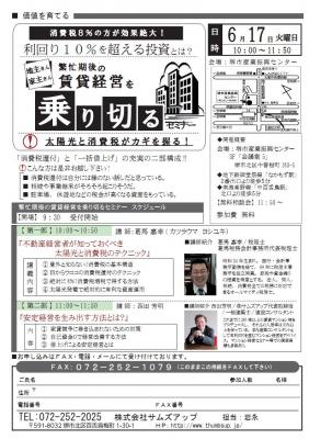 地主さん、家主さん向け『繁忙期後の賃貸経営を乗り切るセミナー』を開催します。