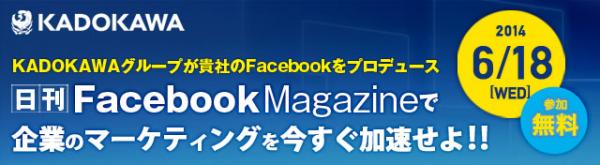 代表取締役社長・江島 民子)は、来たる6月18日(水)に株式会社角川アスキー総合研究所と2社共催セミナー「”日刊Facebookマガジン”で企業のマーケティングを、今すぐ加速せよ!!」を開催いたします。