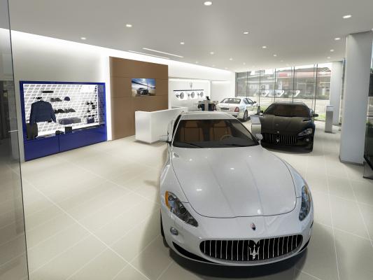 ショールームのデザインは、最新のマセラティCIを全て導入。洗練された白とブルーを基調に、ラグジュアリースポーツブランドにふさわしいエレガントな雰囲気を提供。大きなガラス張りのスペースが、明るい開放感とくつろぎを演出します。