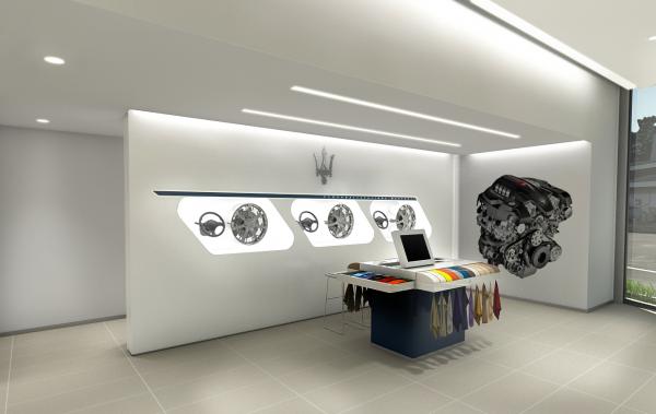 また、インテリアレザー、ウッドパネルなどマセラティモデルの多彩なパーソナリゼーションアイテムを展示した「コンフィギュレーションエリア」を設置。細部にわたりカスタマイズされるお客様に対応いたします。マセラティファンの醸成を担う、豊富なマーチャンダイジングの展示エリアは、ウエアやバッグ、小物など最新のラインアップがご覧いただけます。