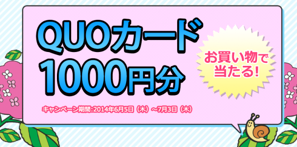 本キャンペーンは、2014年6月5日から7月3日までの期間中にキャンペーンページでエントリーの上、1回以上お買い物をされたお客様から、抽選で25名様に1000円分のQUOカードをプレゼントするものです。