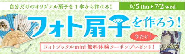 キャンペーン期間中に、新商品『フォト扇子』をご注文いただくと、もれなく「フォトブックルmini無料体験クーポン」をプレゼントいたします。