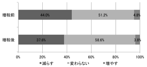 図1は、増税前と増税後における生活費の増減意向を調査した結果になります。