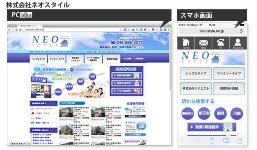 『株式会社ネオスタイル』様は横浜市鶴見区で賃貸物件の仲介業を行う不動産会社です。今回、賃貸物件用ホームページのリニューアルにあたり、集客が効果的に出来るシステムを検討されており、ご要望されていた機能が一通り揃っているという理由から【仲介名人】を導入いただきました。