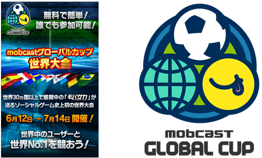 モバイルゲームプラットフォーム「mobcast」(http://mobcast.jp/)の運営を行う株式会社モブキャスト(本社:東京都港区、代表取締役:藪考樹)は、「mobcast」で配信中のモバイルオンラインサッカーゲーム「モバサカ」(http://sc.gmpa.jp/index.html)上で実施されるmobcast Global Cup(MGC)世界大会へのエントリーが、本日15時より開始することをお知らせいたします。