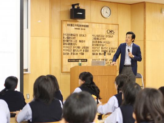 2014年6月12日(木)、東京都立千早高等学校にて開催されたキャリア教育プログラム第1回キャリアセミナーで、日本No.1のインターン採用支援実績を誇る株式会社アイタンクジャパン代表取締役の丹羽が登壇いたしました。『ビジネスで社会をよりよく動かす~仕事の楽しさ・厳しさ、高校生へのアドバイス~』という題名で、現在の仕事について、キャリアに関する高校生へのアドバイス等をお話しました。
