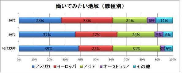 2.地域でみると、20代にはヨーロッパ、30代以降にはアメリカが人気