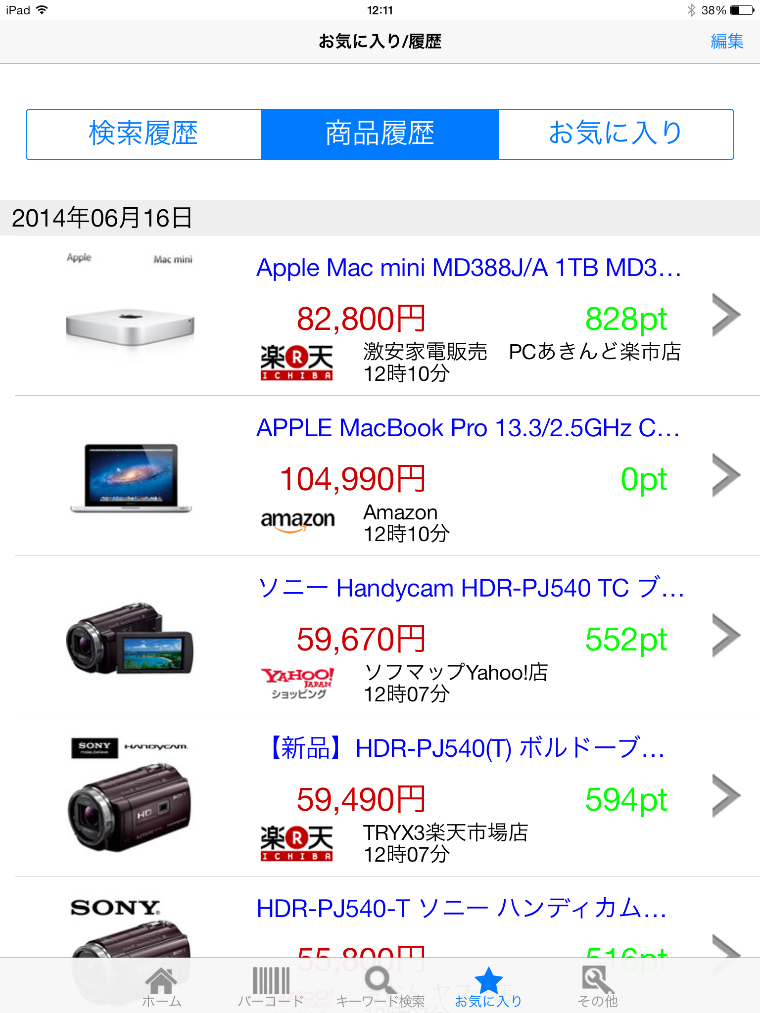 よく購入する商品やもう少し価格が安くなるかチェックしたい商品はお気に入りに登録しておけば簡単に価格をチェックできます。