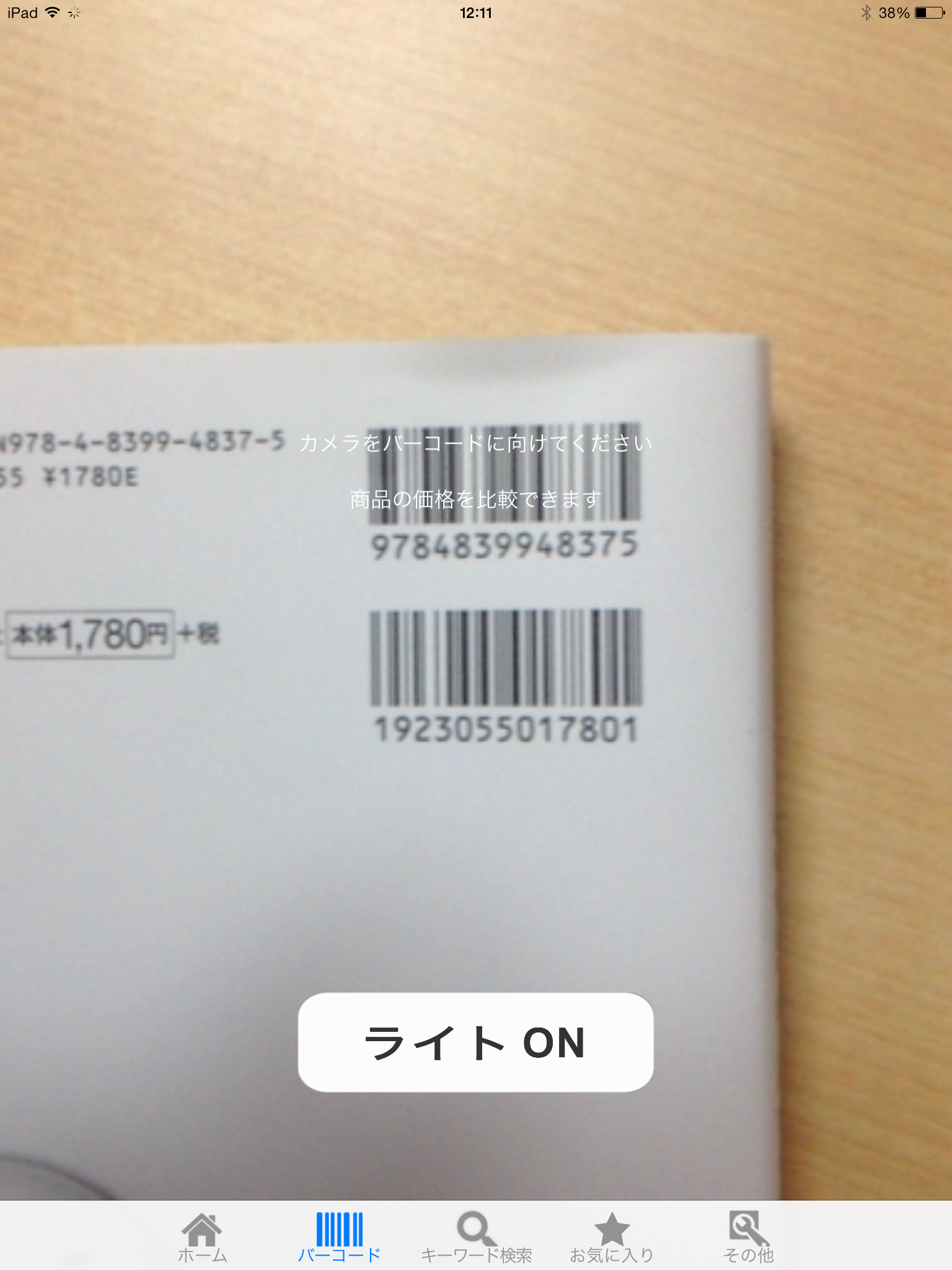1).アプリを起動し、商品のバーコードにiPhone、iPadのカメラをかざします。