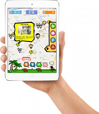 GPS機能付タブレットにより、現地での学習を支援。