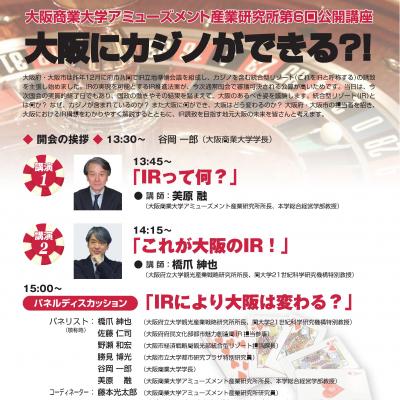 当日は基調講演に加え、関係者によるパネルディスカッションを実施。そもそも統合型リゾート(IR)とは何か?なぜ、カジノが含まれているのか?また大阪に何ができ、大阪はどう変わるのか?大阪府・大阪市の担当者もお招きし、大阪におけるIR構想をわかりやすく解説するとともに、IR誘致を目指す地元大阪の未来を皆さんと考えます。ぜひご参加ください。