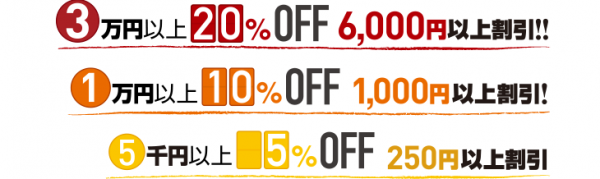 ~ ご注文の合計金額で最大20%割引~