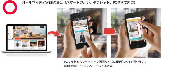 株式会社Real iD(本社:東京都新宿区、代表取締役社長/レジェンド:鈴木宏一)は2014年6月18日より、商業施設むけに「オールマイティWEB」の提供を開始いたしました。同サービスは商業施設のWEBサイトを、スマートフォン、タブレット、PCと全てのデバイスに対応したWEBデザインを構築するサービスです。スマートフォン専用デザインを作成する必要は無く、共通のWEBサイトのページレイアウト・デザインを柔軟に調整して表示します。