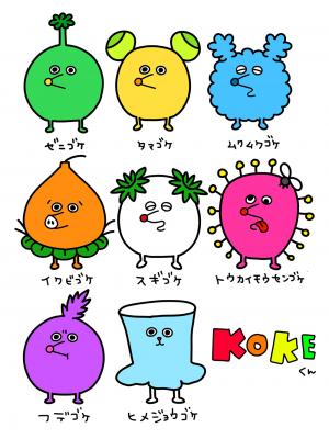 本当にある8種類の苔をモチーフにした、コケから生まれたフシギな生き物。4コマ、アニメ、ゲーム、占い、ツイッターなど幅広い分野でコンテンツを展開しており、ぬいぐるみや靴下、iPhoneケース、絵本などをヴィレッジヴァンガード(一部店舗)で発売している。