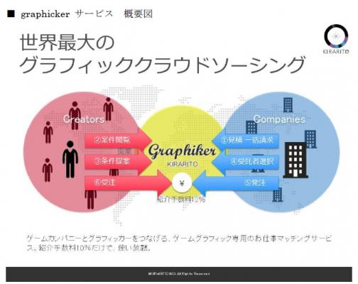 日本国内最大規模のゲームグラフィックソリューション事業を提供する株式会社キラリト(株式会社未来少年グループ、本社:東京都渋谷区、以下「キラリト」)は、世界中のゲーム開発会社とグラフィックデザイナーとを結びつける、グラフィック制作に特化したクラウドソーシングサイト「graphicker (http://graphicker.me)」を全世界に向けて2014年8月にサービス開始することを、本日発表いたしました。